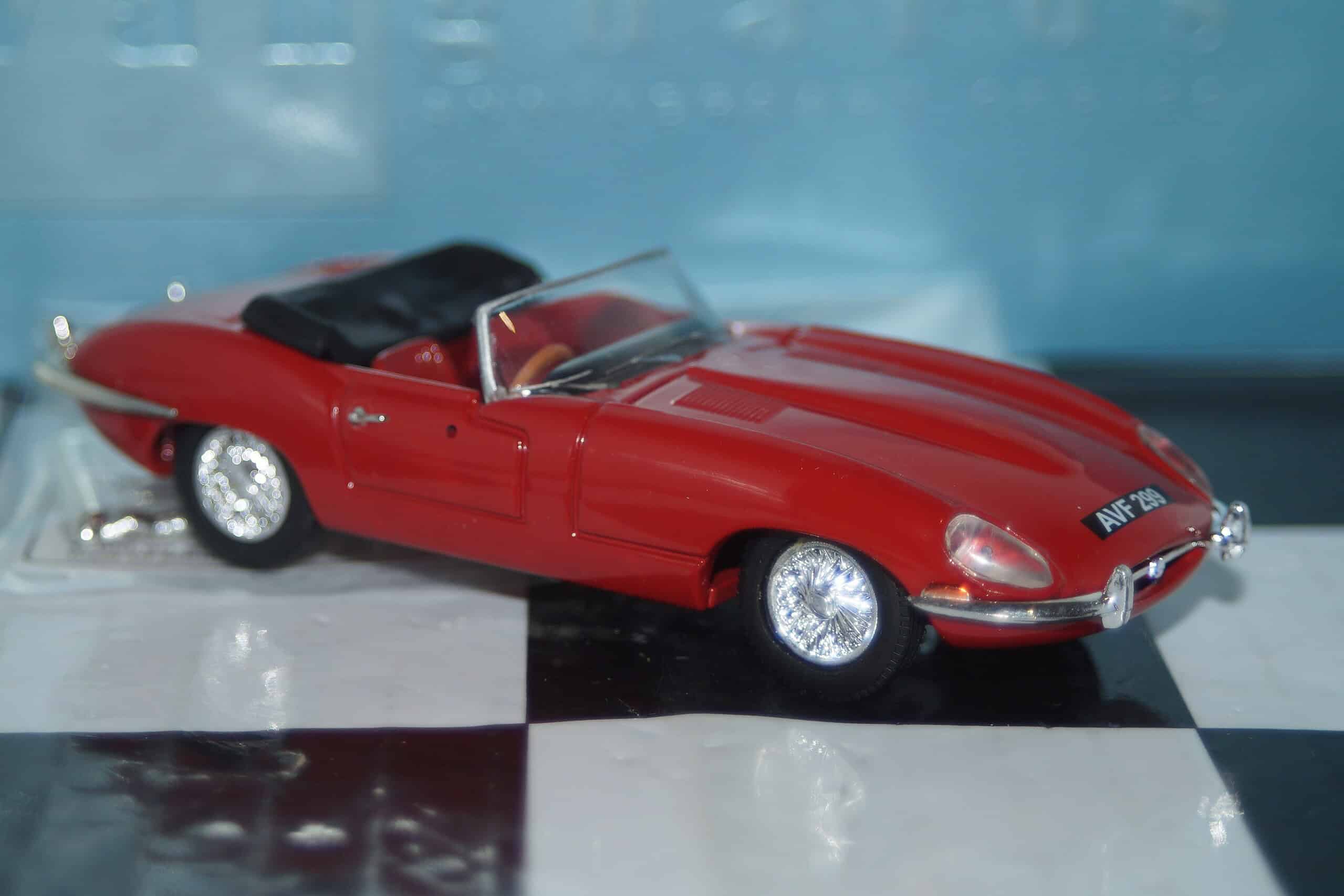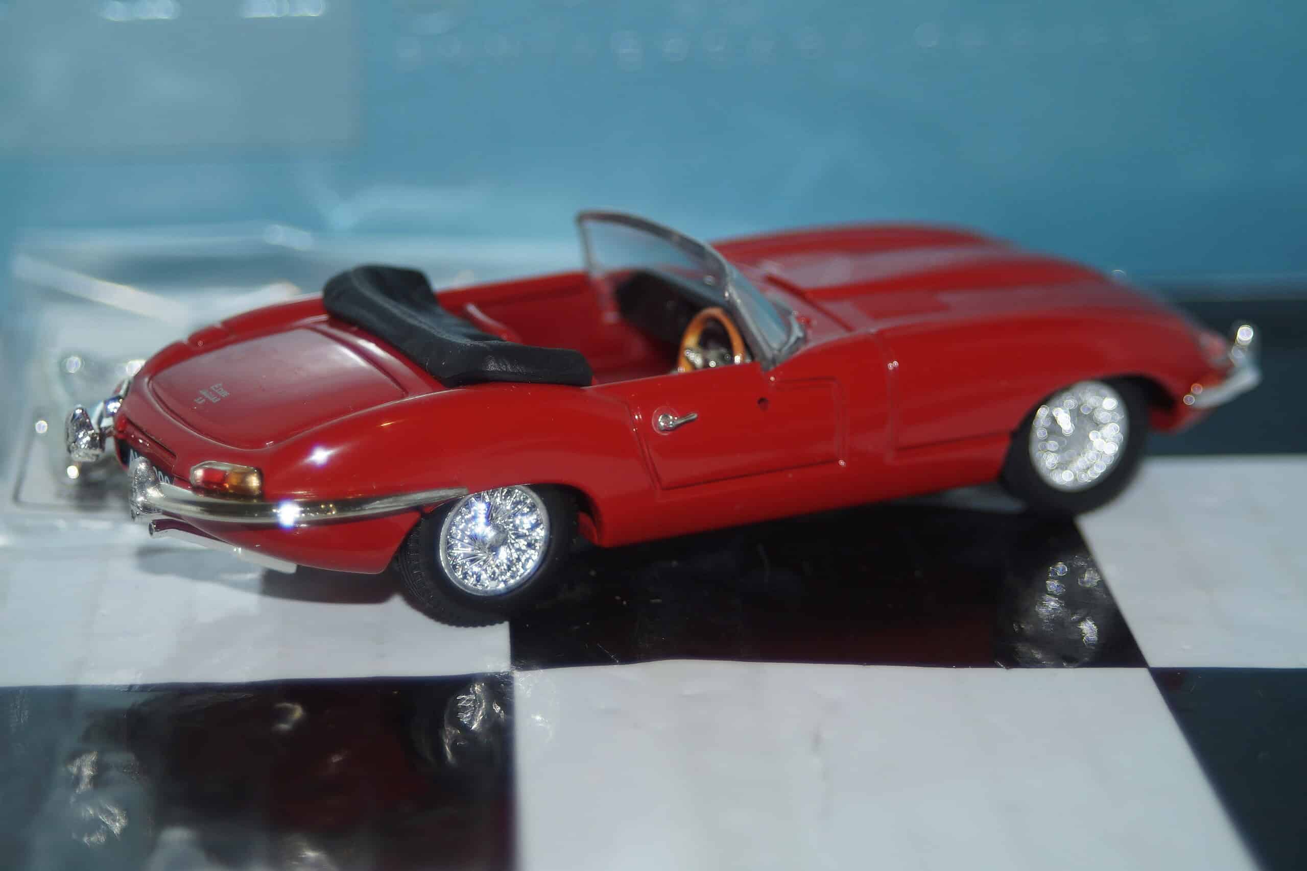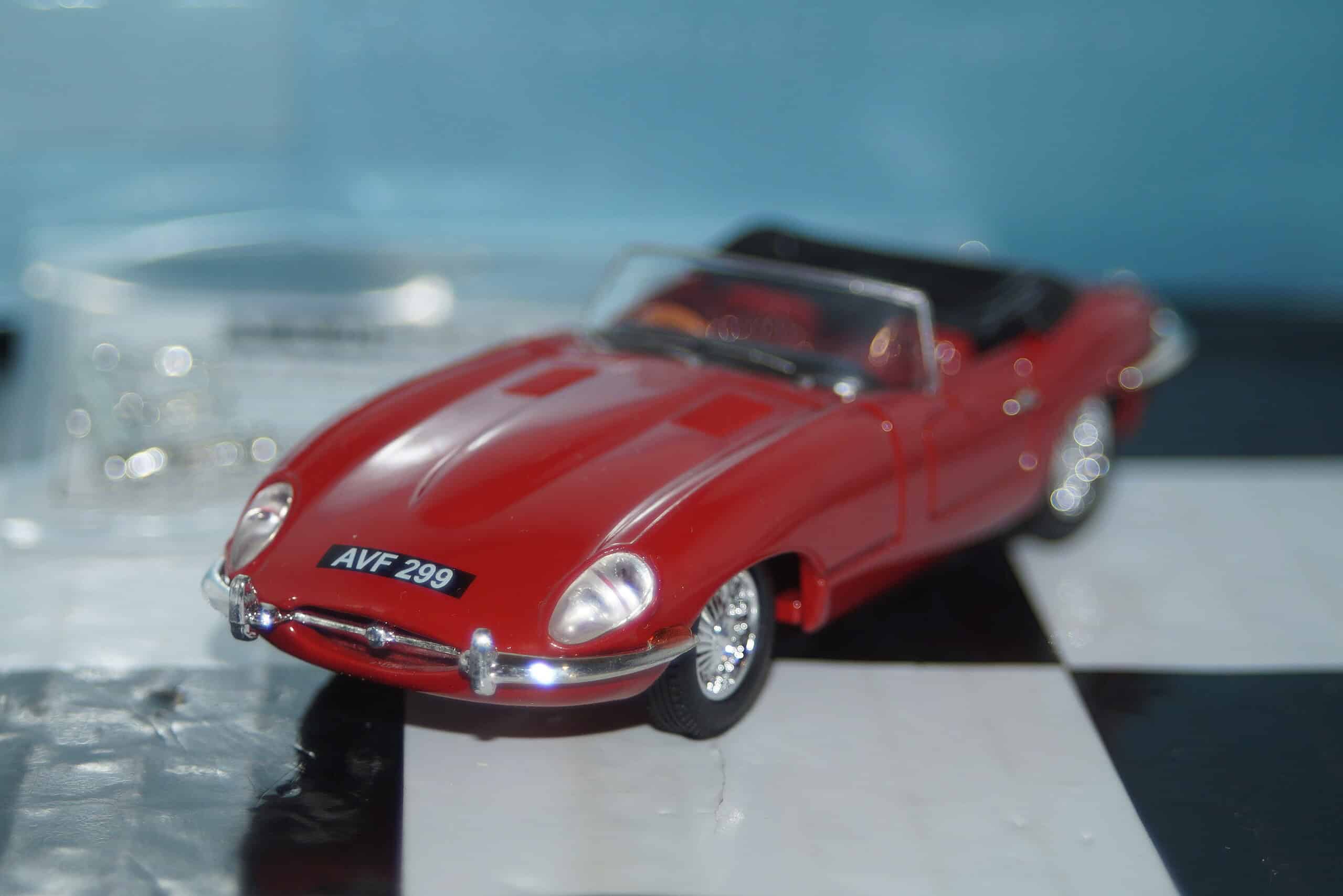 This Model Car is a collectors replica of a Jaguar E-Type in Red