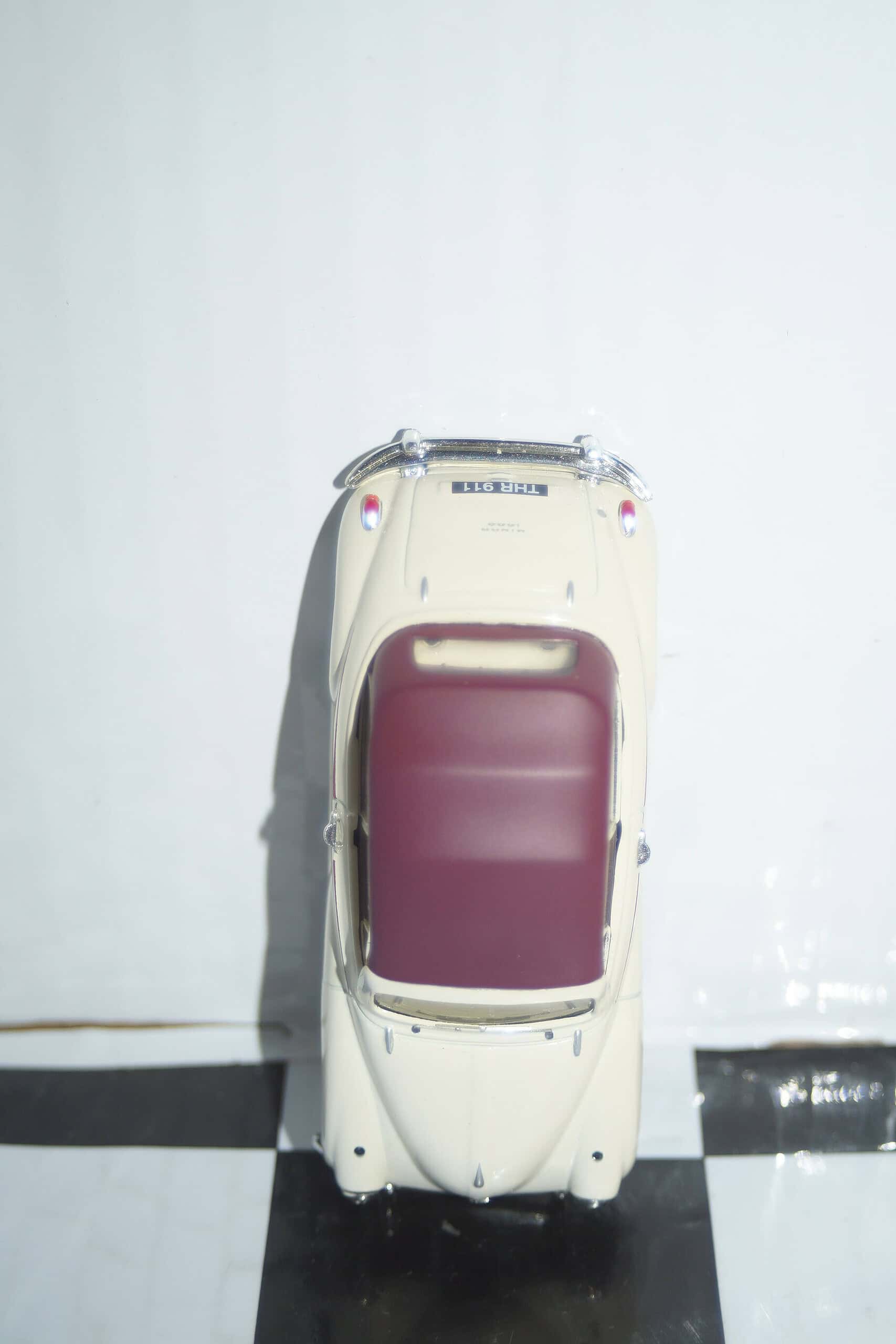 This Model Car is a collectors replica of Morris Minor Convertible in cream and maroon
