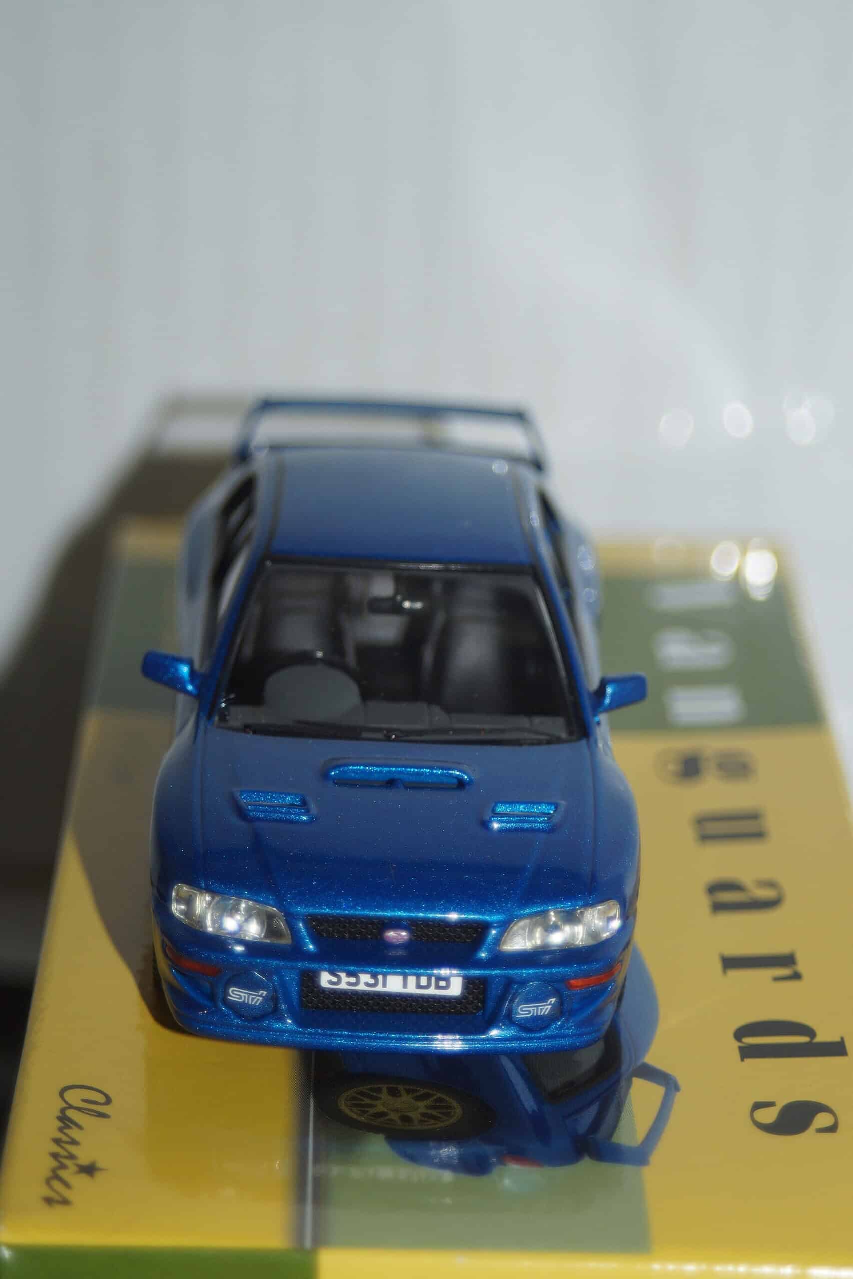 This Model Car is a collectors replica of Subaru Impreza 22B STi Coupe in Sonic Blue